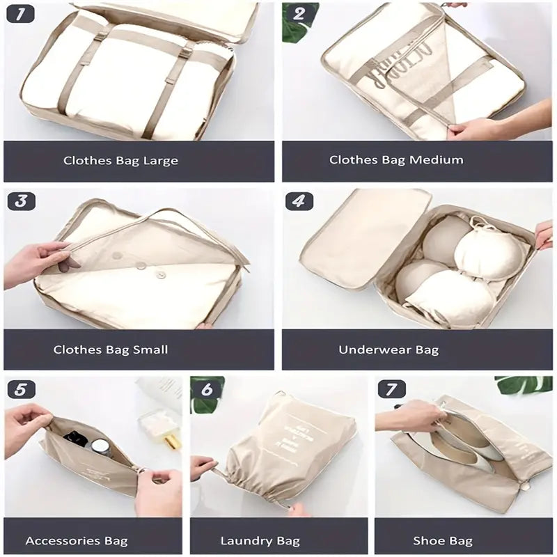 7 PCS Travel Luggage Organizers Bag | For All Kinds Of Clothes & Accessories (Multi-Color)