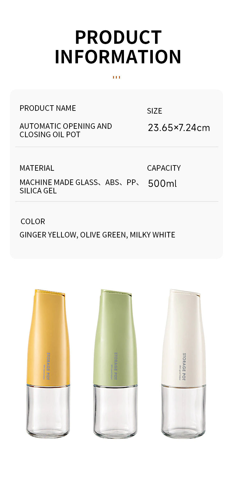 - Convenience and time-saving: Simplify oil pouring, eliminate guesswork, and save time in the kitchen.