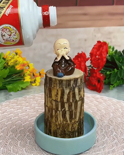 Size:Â (Tree stump: about 4inch high,2-3 inchs wide,Doll:2.4inchs) that are easy to care for. Note: Brazilian wood needs to distinguish between the front and the back, the side with the “Up” label paper on top, A waxed head up when received, and a waxless head in the water.