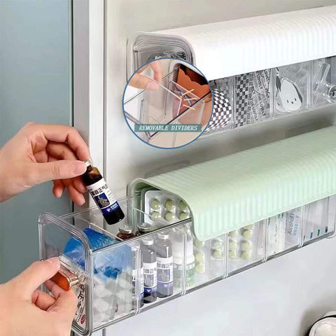 The size of this organizer box are 30 cm x 9.5cm x 8.5cm, wall-mounted design, more space-saving, which will not take up much place in your kitchen, office and bedroom.