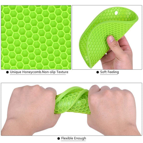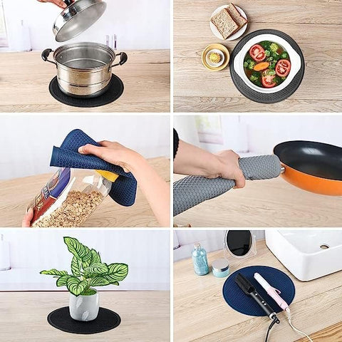 Safely hot pots on your table / platform without damaging the surface (new-age trivet), use it in place of mitts for holding hot pans, open tight jar caps, rest your cooking spoons, or shell garlic cloves with silicone pot holders.