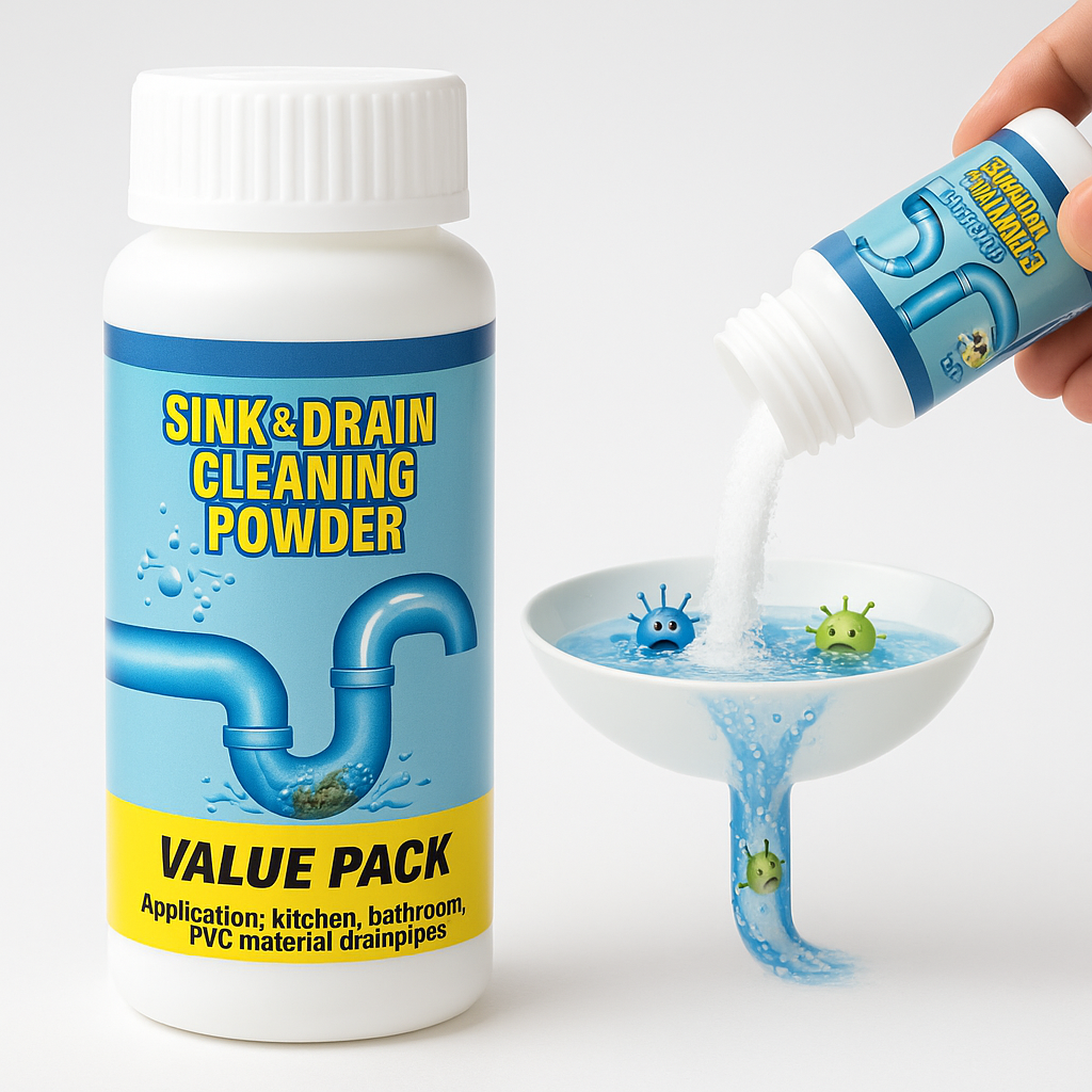 Say goodbye to stubborn clogs and slow drains with this Powerful Sink & Drain Cleaning Powder — your go-to solution for maintaining clean, odor-free, and smoothly flowing drainage systems. Specially formulated to break down grease, hair, food particles, and soap scum, this fast-acting powder works wonders in kitchens, bathrooms, and utility areas.