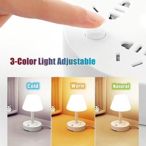 - 3-in-1 Design — Warm LED lamp, multi-socket power strip, and USB charging hub in a single footprint.