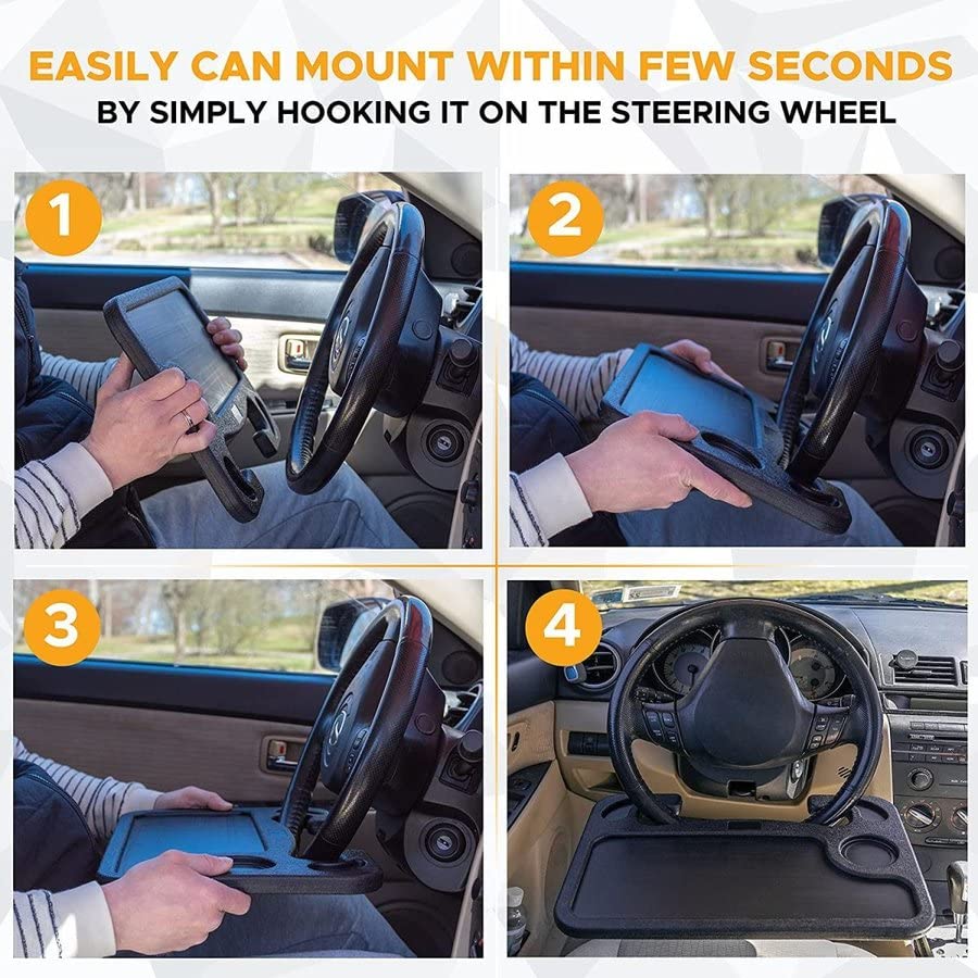 Universal Fit – Designed to fit most standard car and truck steering wheels, the tray easily attaches and detaches within seconds, offering hassle-free use.